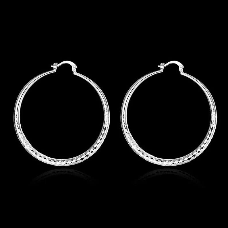 925 Sterling Silver Diamond Cut Large 50mm Sleeper Hoop Earrings