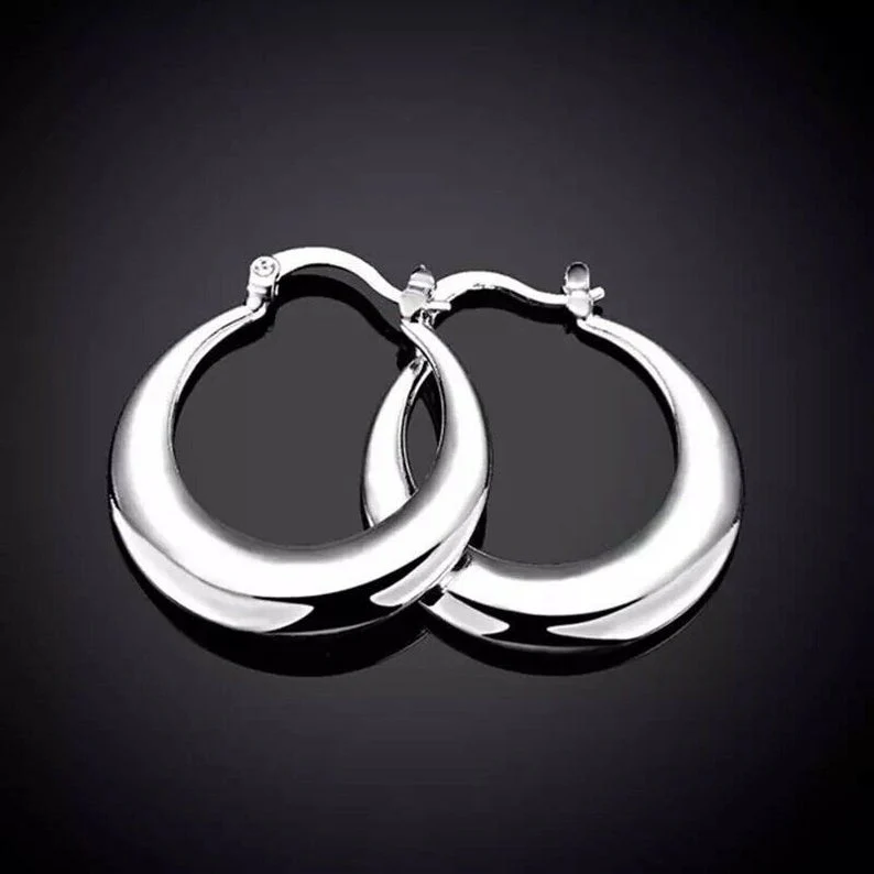 925 Sterling Silver Moon Crescent Hoop Earrings