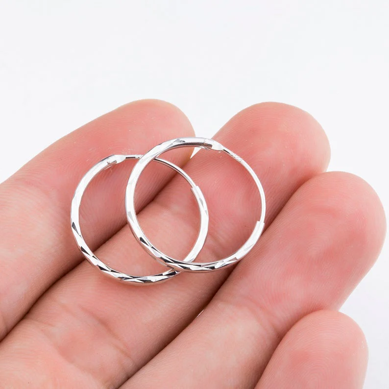 9ct White Gold Diamond Cut Sleeper Hoop Earrings