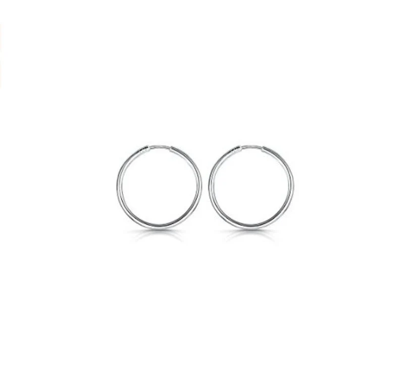 9ct White Gold Plain Hoop Sleeper Earrings 12mm - 24mm