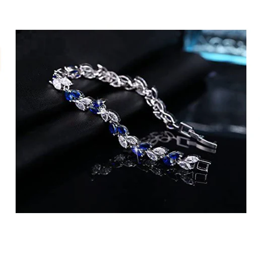 Beautiful Sapphire and White Topaz Gemstone 925 Silver Bracelet perfect for a gift for a loved one or a treat to yourself