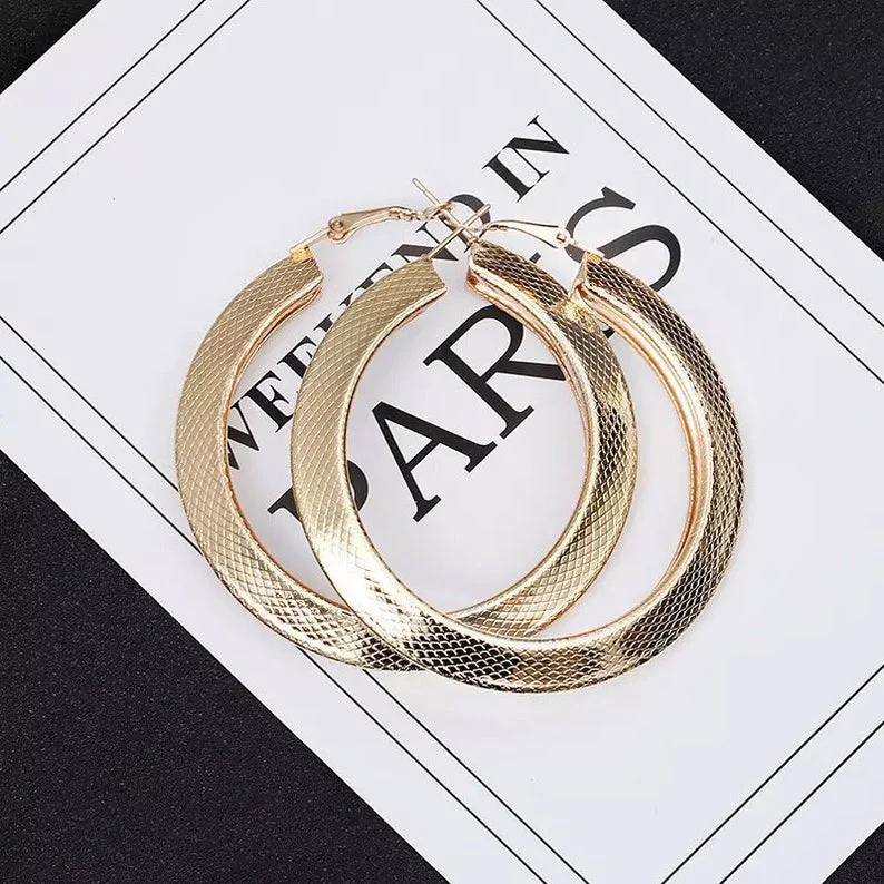 Expertly crafted with a unique snake pattern design, these 50mm hoop earrings are available in both gold and silver. The on-trend style adds a touch of edginess to any outfit, making them the perfect statement piece for any fashion-forward individual. Elevate your accessory game today with these stunning Snake Pattern Hoop Earrings.