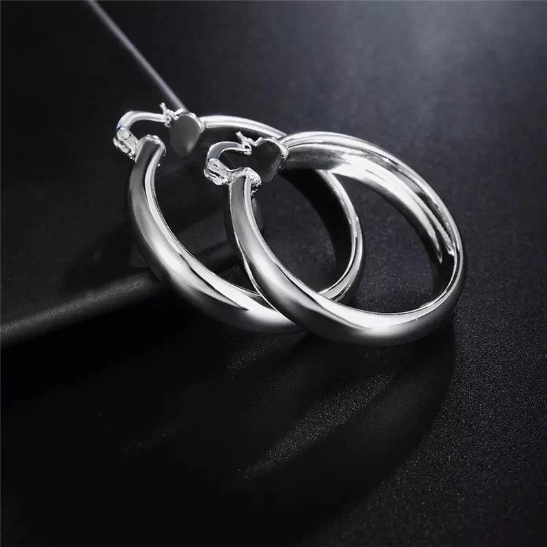 Solid 925 Sterling Silver Chunky Plain Huggie Hoop Earrings